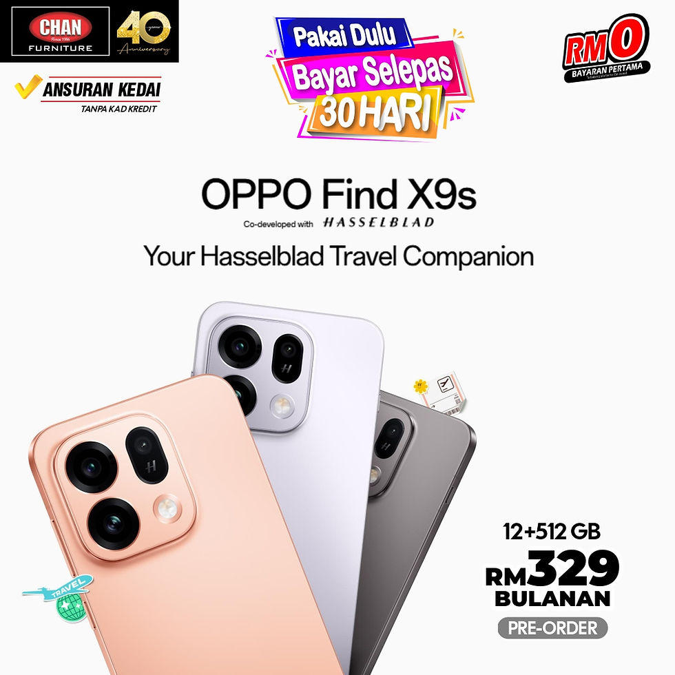 Jangan lepaskan peluang untuk menjadi pemilik terawal OPPO Find X9s. Sesi pra-tempah kini dibuka! Lawati cawangan Chan Furniture terdekat anda hari ini untuk bertanyakan tentang pakej hebat ini.