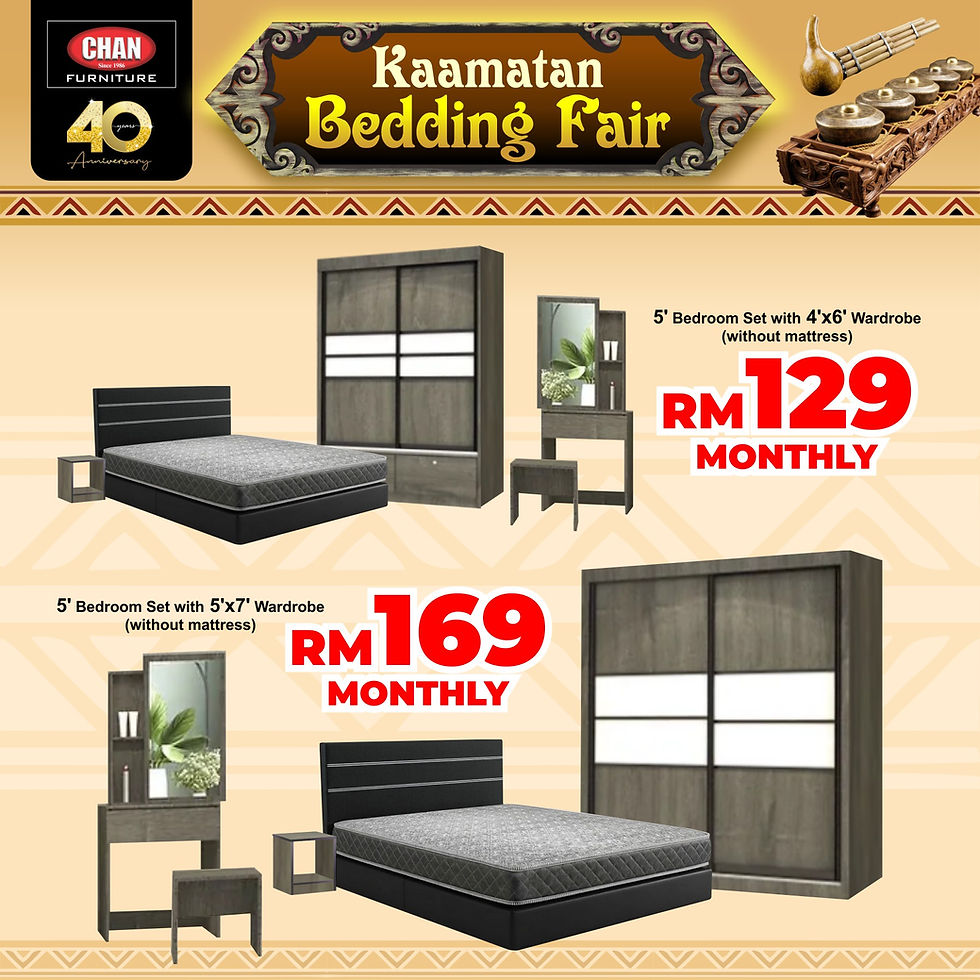Jangan lepaskan peluang ini kerana stok adalah sangat terhad sempena musim Bedding Fair. Jadikan bilik tidur anda tempat berehat yang paling selesa dan cantik tahun ini.